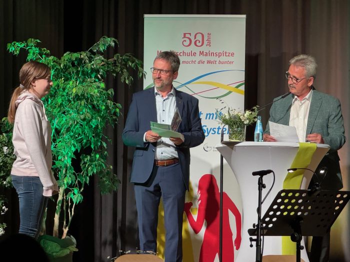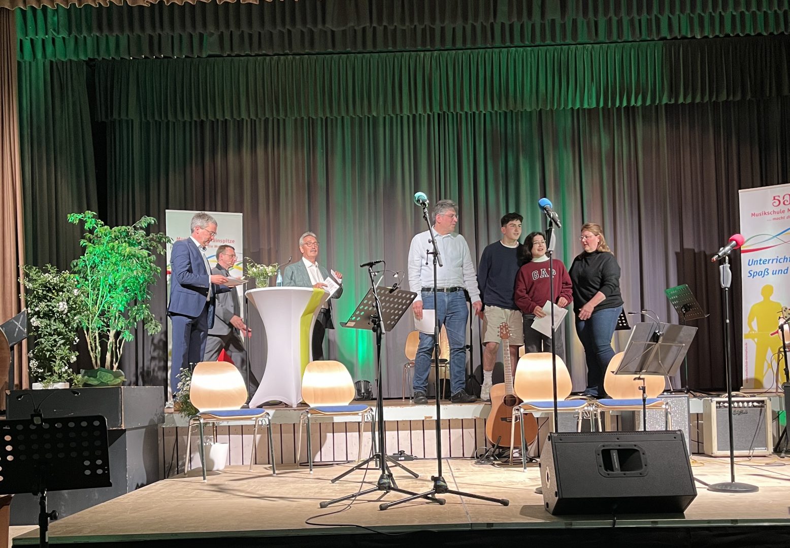 Was wäre wohl ein angemessener Rahmen für die Preisverleihung? Da bot sich inhaltlich und zeitlich naheliegend die Jubiläumsveranstaltung von „50 Jahre Musikschule Mainspitze“ an – und wir durften mit der Stiftung dabei sein.